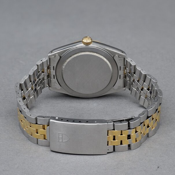 The Tudor Prince Oysterdate is a classic from the 1990s that effortlessly combines elegance and everyday practicality. With its elegant two-tone stainless steel case and gold-plated accents, it is reminiscent of its big sister from Rolex in terms of style – but remains deliberately independent. The black dial with gold indices and date display at 3 o'clock exudes classic calm. The Tudor 74033 is more than just a stylish vintage dress watch – it is an underrated treasure with a strong character that is inspiring more and more collectors today.